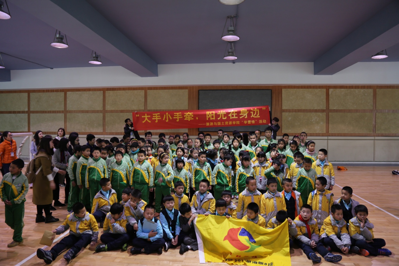 3月是“学雷锋”月,为鼓励大学生弘扬雷锋精神,投身志愿服务,凝聚青春微梦想,传递校园正能量。2017年3月25日,旅游与国土资源学院分团委组织大学生志愿者开展了“大手小手牵,阳光在身边”为主题的“学雷锋”志愿者活动。活动目的是给重庆市特殊教育中心的盲童们带去一份“阳光”,带去温暖与欢笑。重庆市特殊教育中心身前是重庆市盲童学校,是重庆市唯一一所视障教育学校。本次志愿服务活动内容是带领重庆珊瑚实验小学二年级海豚班的小朋友们参观重庆市特殊教育中心,与海豚班的小朋友们一同体验盲人的生活,走进盲童的世界。