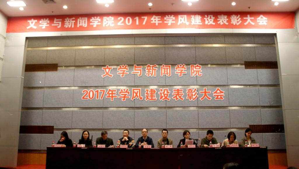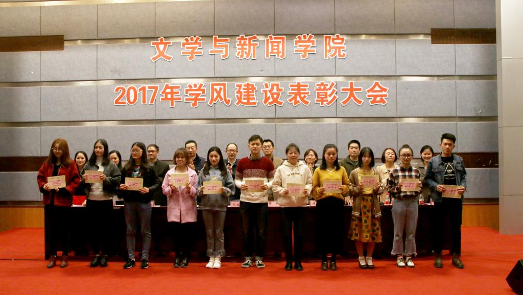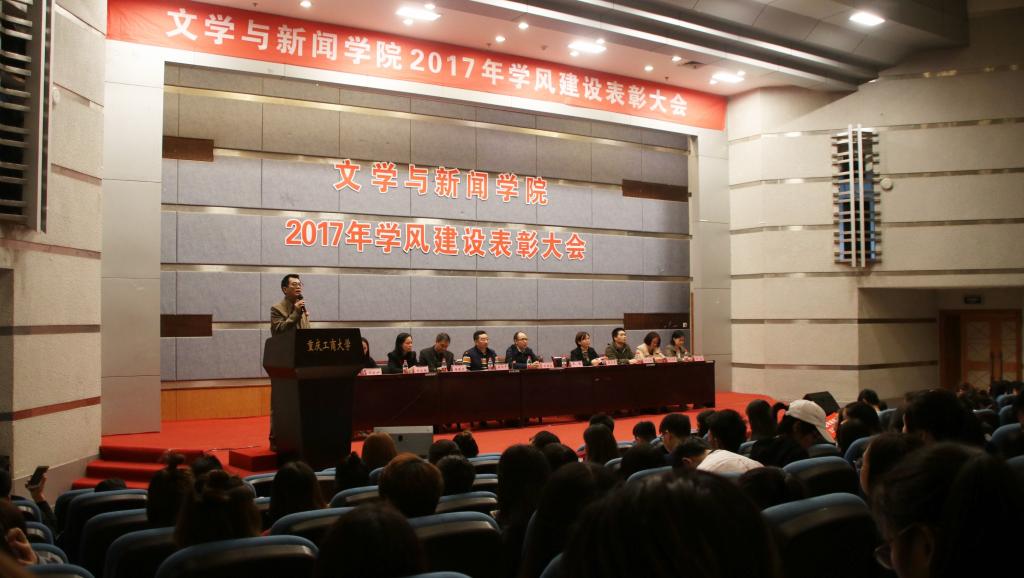 2017年10月27日,文学与新闻学院在南岸校区七教07100学术报告厅召开了文学与新闻学院2017年学风建设表彰大会。学院党委书记段庸生、党委副书记李华平、院长蔡敏、副院长刘宏毅、康清莲及各专业系主任共同出席本次会议,文新学院全体辅导员、学生干部、获奖团队、个人及15、16级学生代表共同参与本次会议。