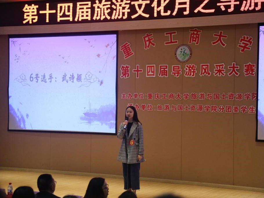 2017年11月3日,第十四届旅游文化月之导游风采大赛决赛在田家炳209教室正式拉开帷幕。“导游风采大赛”面向我校全体在校学生,旨在丰富校园文化生活,为热爱旅游以及希望从事旅游事业的同学们提供一个学习和展现自我的平台,深入体现“知识、能力、素质”三位一体的育人理念。出席本次活动的领导和评委是旅游与国土资源学院党总支书记张维贵,副院长王宁、副院长郭阳旭以及旅游管理系的许颖、许曦、刘冰彬、杨雁老师。