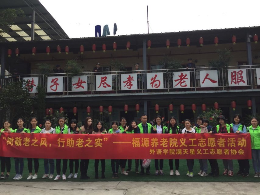 2017年10月28日早上9点,重庆工商大学外语学院满天星义工志愿者协会在南岸区福源敬老院举办了“树敬老之风,行助老之实”——福源敬老院义工志愿者活动。本次活动由外语学院分团委书记黄志婕老师指导,义协部长陈希负责,重庆工商大学外语学院满天星义工志愿者协会全体干事及校内志愿者参加。