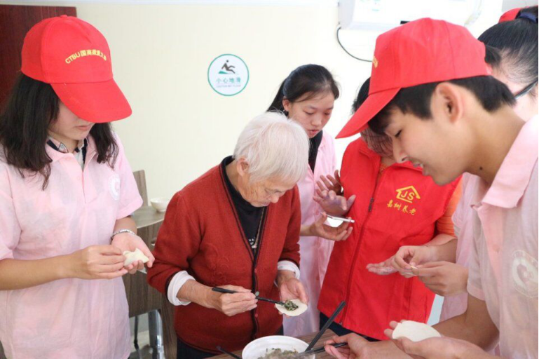 在活动中,志愿者为老人们精心准备了表演节目,与老人们深情互动,营造了浓厚的节日氛围。志愿者们充满活力的表演、优雅的舞蹈、怀旧的年代剧等吸引着老人们的注意力。其次,志愿者们特别安排了重阳节包饺子活动,与老人们共坐一桌,其乐融融地包着饺子,志愿者的细细询问、老奶奶们的细心教导以及与老人们的畅谈等打动着在场的工作人员。老人们打开了心扉,与志愿者互动。此外,志愿者们代表重庆工商大学微爱义协为老人们提供了精心准备的礼品,志愿者们带去了最真诚的关怀,活动现场有老人因此感动落泪。