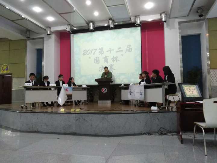2017年11月26日下午两点,经过为期一个月的角逐,第十二届“国商杯”辩论赛决赛如期在国商407多功能厅举行。冠军之争在国际商学院2017级国贸一班和会计一班之间进行,校辩论队队长邹航学长,谢白雪学姐,王玉涵学姐,张煜学长和刘璐学姐担任本次比赛评委。
