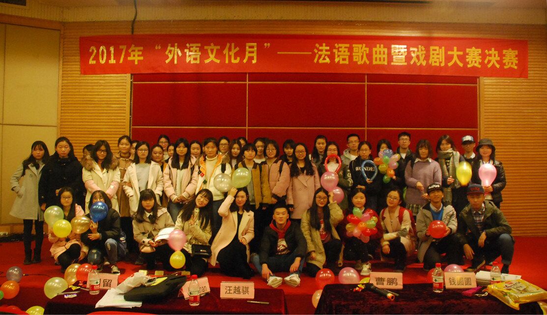 2017年11月30日下午18点30分,由外语学院分团委学生会主办的法语歌曲暨法语戏剧大赛决赛在南岸校区博智楼7200报告厅成功举办。本次大赛由吴昊、戴裕媛同学主持,更有幸邀请到法语系系主任曹鹏老师,外语学院分团委书记黄志婕老师,法语老师钱圆圆、汪越琪,法语外教Jonathan以及紫手工话剧社第22任社长刘留担任评委,各学院学生会代表担任嘉宾。