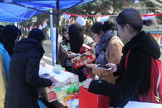自2013年与营盘村小学建立志愿服务关系至今,经济义协与山区孩子们一起成长。据了解,原先在小学教书的老师因为年纪大了于今年无奈退休,目前仅有一名老师在简陋破旧的环境中坚持为3个年幼的孩子传授知识、照顾他们的学习和生活。在志愿者的热心倡导下,校园里的不少同学都积极地参与了此次活动。尽管天气寒冷,同学们参与活动的热情却并未受到影响,前来购物订货、捐款留言的同学络绎不绝。每卖出一件商品、写下一条留言、收到一次捐款,都能从中感受到同学们满满的心意,一点一滴汇成爱的暖流传递给营盘村小学的孩子们。