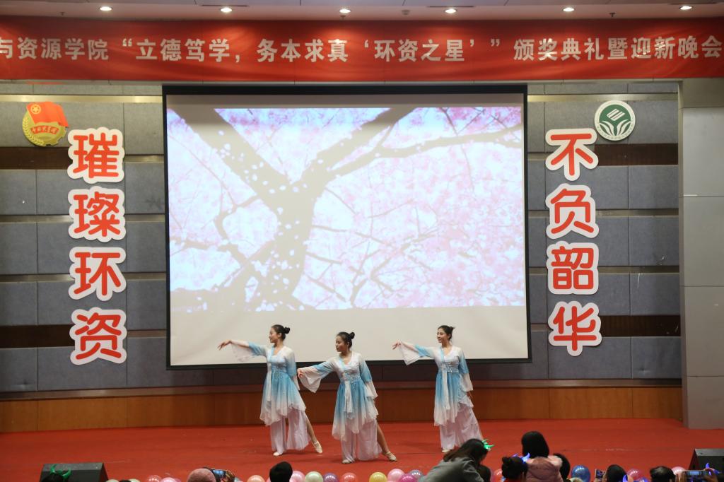 晚会以一段精彩的总结学院2017年度学生工作视频拉开序幕。接下来,王书记致辞讲到,学院历来高度重视学生学习与学生干部能力的综合培养,希望环资学子能文能武,搞好学习的同时也做好学生工作。只要见贤思齐,每位同学都能发光发彩,希望大家志存高远,在新的2018年里奋发向上,努力拼搏。会上,当场嘉宾分别为“奋发向上,舞姿婀娜”的求真文艺之星——15级食品科学与工程二班向虹霓;“热心助人,编织美梦”的求真志愿之星——14级环境工程一班谭雨薇;“勤奋刻苦,严谨治学”的求真学习之星——15级环境工程三班曹嘉真;“敢为人先,创新卓越”的求真科创之星——14级食品科学与工程一班廖吕以及“胸有鸿鹄,志达青云”的求真环资之星——17级研一环境工程陈鹏颁发了荣誉证书与求真奖杯。其中陈鹏学长发表获奖感言时鼓励学弟学妹们“胸有丘壑,必达青云”,希望大家在学习和生活中应制定清晰的目标,协调好时间,坚定理想。
