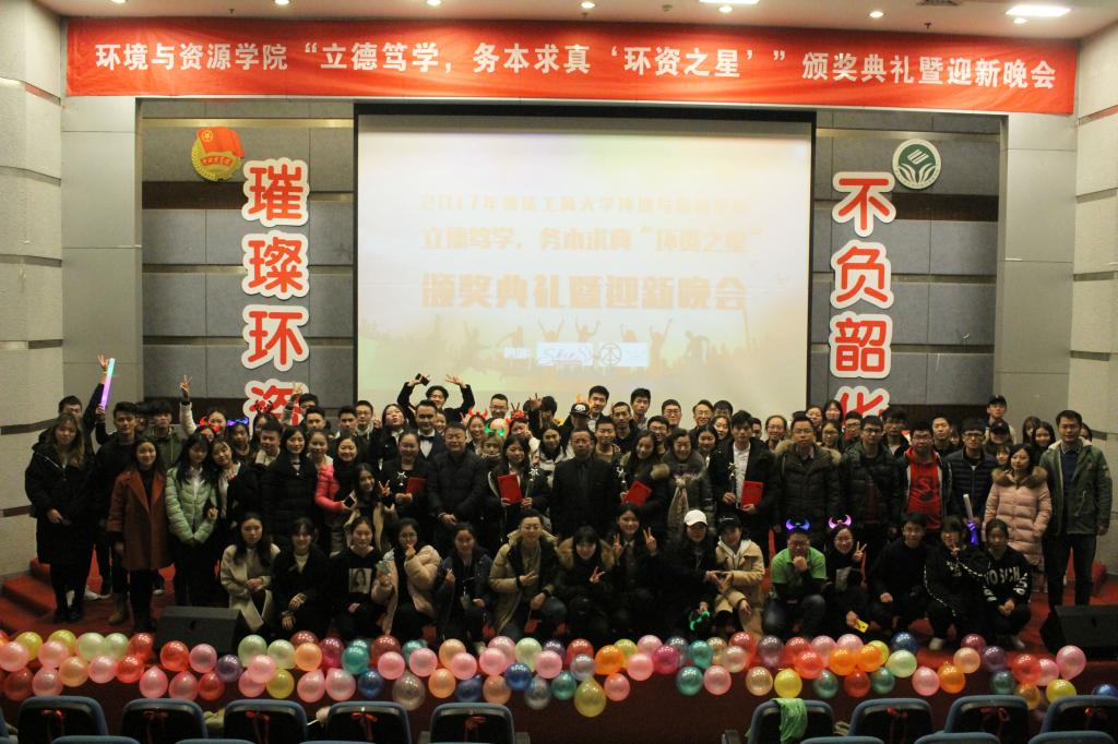 为进一步弘扬“立德笃学、务本求真”的院训精神,充分发挥先进典型的模范作用,促进全院学生全面发展,同时也为迎接新年的到来,更好地展现学生风采、增强学院学生组织、各班凝聚力,由环境与资源学院分团委学生会主办的“立德笃学,务本求真、环资之星”颁奖典礼暨迎新晚会于2017年12月24日周日晚上19:00在南岸校区博智楼7100报告厅举行。学院分党委王竹青书记、分党委吴佑波副书记、王星敏副院长、学院关工委副主任王宜林老师、热心资助学院学生的02级化工专业优秀校友陈诚、各系系主任、部分专任教师及学团办老师参加此次晚会。