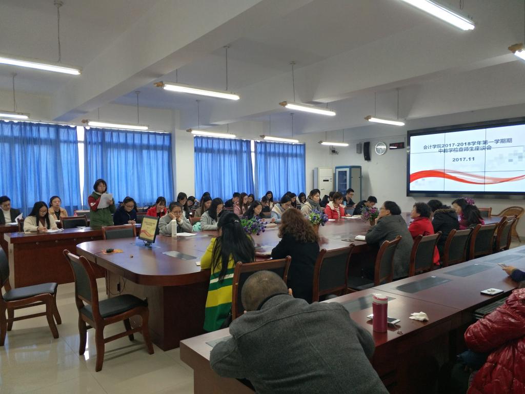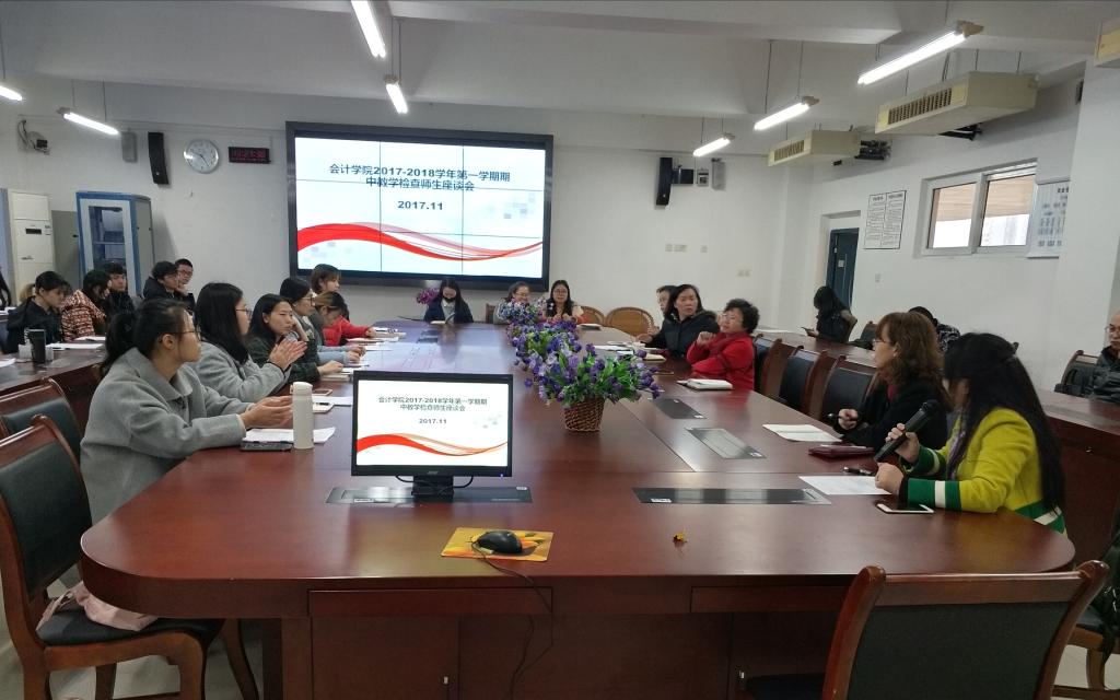 为了促进师生交流,真实反映教师课堂情况,2017年11月22日,会计学院2017—2018学年第一学期期中教学检查座谈会于南岸校区博智楼7601会议室顺利举行。参加本次活动的领导有:会计学院分党委书记罗惠玉,副书记尹建平,会计学院副院长程文莉,以及学院督导老师,教务办老师和辅导员老师们。