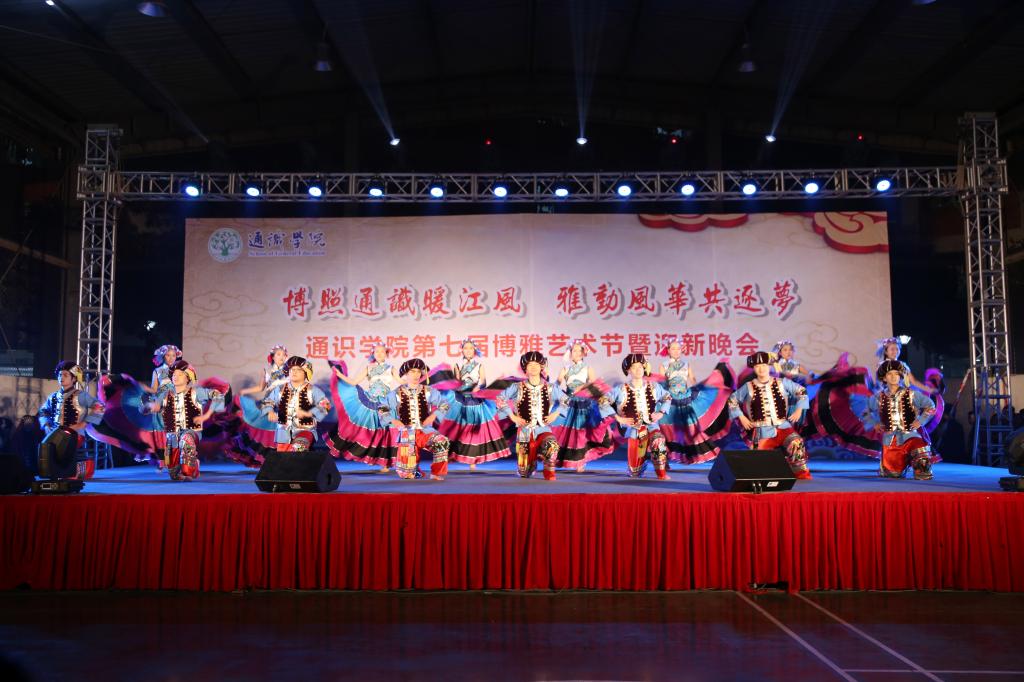 开场舞《七月火把节》热情洋溢,将华美的乐章,曼妙的舞姿与新年的祝福交织在一起,拉开了晚会序幕。幕布剧《一路走来》以独特的方式展现了新一代大学生的心路历程,让在座的各位学子感怀颇深。充满时代气息的印度舞《Gola Gola》、街舞串烧《Street mixture》与刚柔并济的民族舞《茉莉花》、《青蛇》同台献艺,优美的身姿和深情的演绎扣人心弦。由同学们自编自导自演的小品《如此推销》、《没想到噻》,以惟妙惟肖的表演,别出心裁的服装和令人捧腹的反串,深受观众好评。莅临现场的领导老师们也毫不逊色,倾情演唱歌曲串烧,婉转昂扬的歌声直击人心,一度将现场氛围推向高潮。中国梦存在于每一个中华儿女的心间,诗朗诵《祖国,以梦为马》用一份豪情加一份诚挚,引发了观众的强烈共鸣;时光回转,经典永存,由文艺部同学带来的T台秀《一眼时空,再梦经典》引人入胜;一曲乐器合奏《赛马》丝丝入扣,更是别是一番风味。“上下求索,兴我工商”,最终,晚会在《大路漫漫,其修远长》的校歌合唱中完美谢幕。