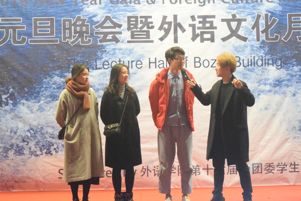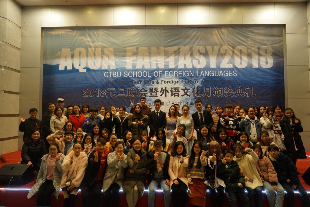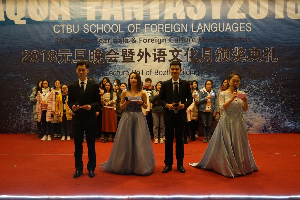 2017年12月30日18:30,由重庆工商大学外语学院主办、外语学院分团委学生会承办的2018年元旦晚会暨外语文化月颁奖典礼在南岸主校区7100报告厅成功举办。重庆工商大学外语学院副院长周琳教授、外语学院党总支陆嘉书记、外语学院英语系主任邹莉老师、外教Jonathan受邀出席晚会,全校各兄弟组织主席团也受邀参与了此次活动。