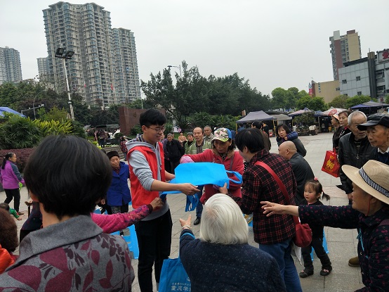 “金山银山就是绿水青山……”3月23日下午,重庆工商大学财政金融学院“星火”义工志愿者协会的志愿者们来到汇雅社区,向居民们宣传环境保护的相关知识。