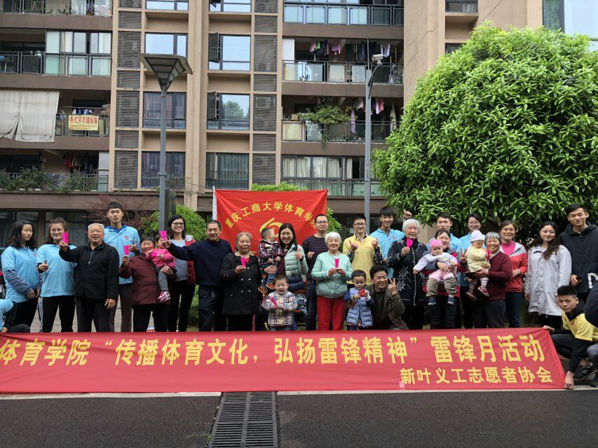 为弘扬“奉献、友爱、互助、进步、为人民服务”的雷锋精神,增强大学生的志愿服务意识,提高对社区的责任感和归属感。重庆工商大学体育学院新叶义工志愿者协会于2018年3月24日上午9时,在重庆市南岸区海棠溪街道招商科苑小区举办义工文化节“传播体育文化,弘扬雷锋精神”雷锋月活动。