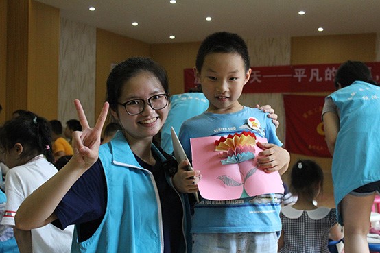 缺乏沟通和交流往往是现代家庭中一种普遍的现象,而家长和孩子的沟通,实际是两个生命的碰撞。为了让那些面对面说不出口的感情和想法得到宣泄,志愿者将孩子们与父母的合照以及父母对子女满满的爱用视频的方式呈现出来,并鼓励孩子们在电话中对父母说出心里话,希望通过这种方式能够促进相互之间的理解。此后,志愿者带领孩子们一起学习了歌曲《鲁冰花》、古诗《游子吟》,并教会了他们如何亲手制作贺卡,让小朋友们在体验手工乐趣的同时牢记父母的养育之恩。