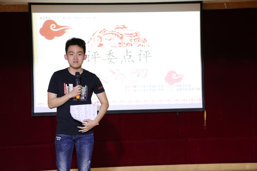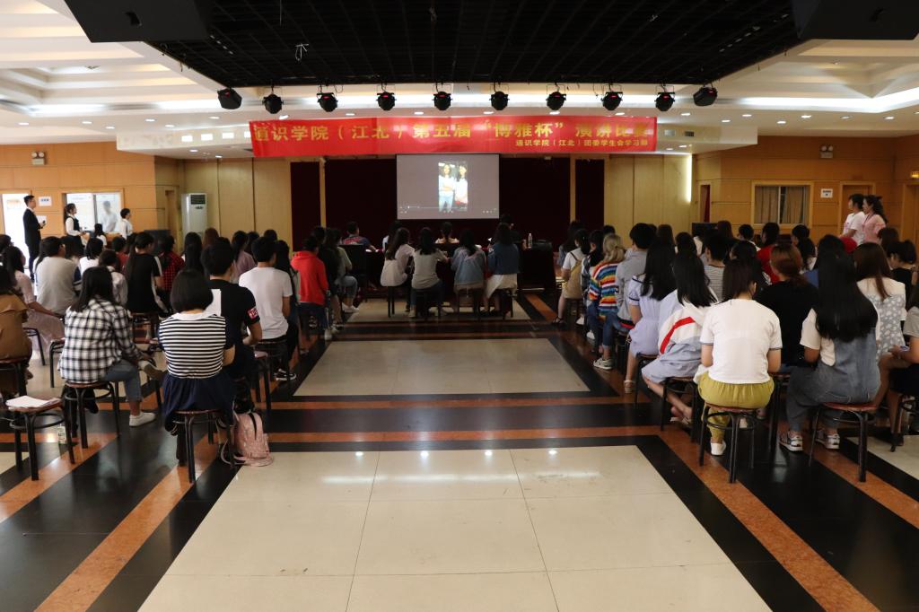 2018年5月12日上午10:00,通识学院(江北)团委学生会学习部于江北校区学生活动中心组织了以“‘中华魂’《腾飞的祖国——改革开放四十年》”为主题的第五届“博雅杯”演讲比赛决赛。比赛由通识学院分团委书记杨阳老师,校演讲与口才协会会长左瑞雪,通识学院(兰花湖)学生会文艺部主席俞超凡担任评委。