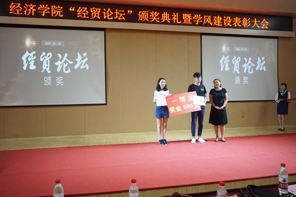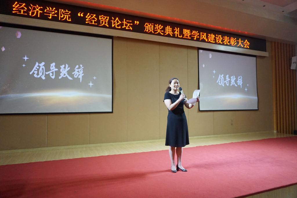 5月18日下午2点,第十一届“经贸论坛”颁奖暨学风建设表彰大会在田家炳209顺利举行。出席本次活动的嘉宾为经济学院分党委王小玲书记,分党委于频副书记,院长助理黄潇老师,经济学系主任李然老师,贸易经济系主任杨海丽老师,国贸系王美英老师,会展系杨军老师及全体辅导员老师。