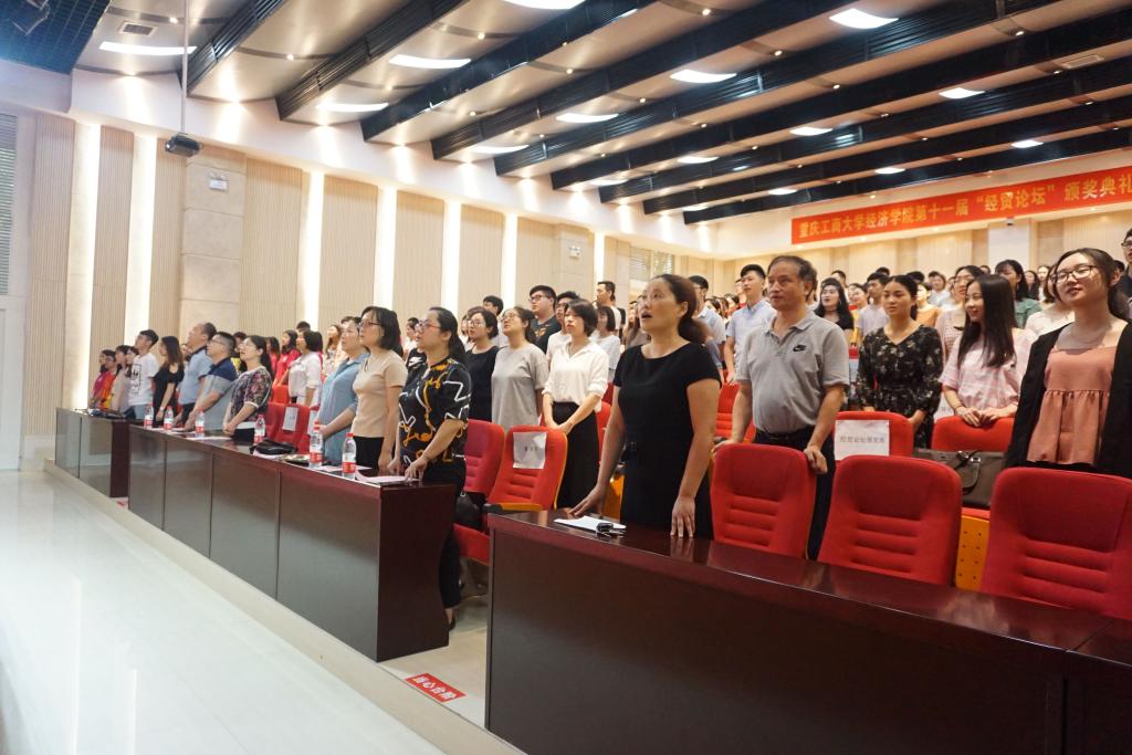 本次大会在庄严的校歌合唱声中开始。活动共分为四个环节,包括第十一届“经贸论坛”颁奖;风建设工作表彰;活力团支部;优秀国防班会以及36182素质拓展颁奖和国贸技能大赛发布会展示。首先,王小玲书记为本次颁奖典礼致辞,希望同学们可以将理论和实践相结合,不断的加强学术能力的培养。随后,由院长助理黄潇老师宣读了本届“经贸论坛”的获奖名单。学生代表任培艺同学分享自己的获奖经验,表示在学术论文选题、撰写等方面,要多和老师、同学加强沟通交流,不断的完善文章思路,同时感谢学院有这样一个平台,可以让同学们的论文写作水平得到锻炼。