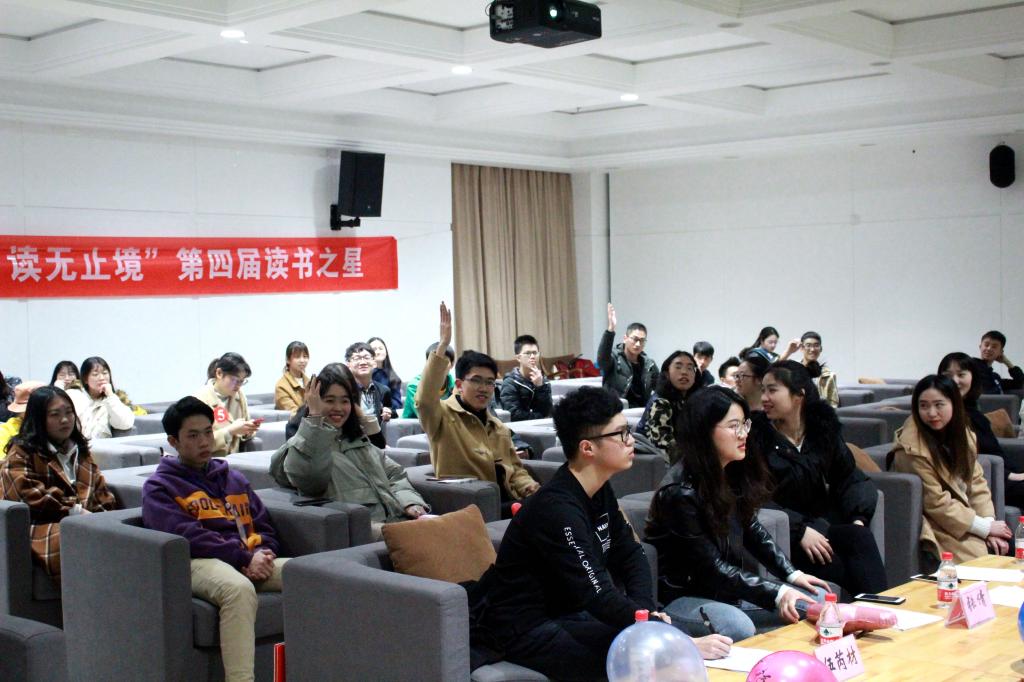 首先,环资分团委学生会副书记陈杰致开幕词,她向在场同学表达了读有所得、学有所获的美好祝愿。随后,参赛选手从作者简介、内容简述、美句赏析三方面进行作品解读,并分享自己的读书心得。活动过程中,除了精彩纷呈的书籍分享,评委提问也是妙趣横生,同学们用思想碰撞出美丽的火花。游戏环节,在场观众积极参与抢答,场面十分激烈。根据评委评分和观众投票,评选出比赛前三名,嘉宾为其进行颁奖。最后,环资分团委学生会主席杨园媛作活动总结,她建议同学们坚持阅读,充实自我。