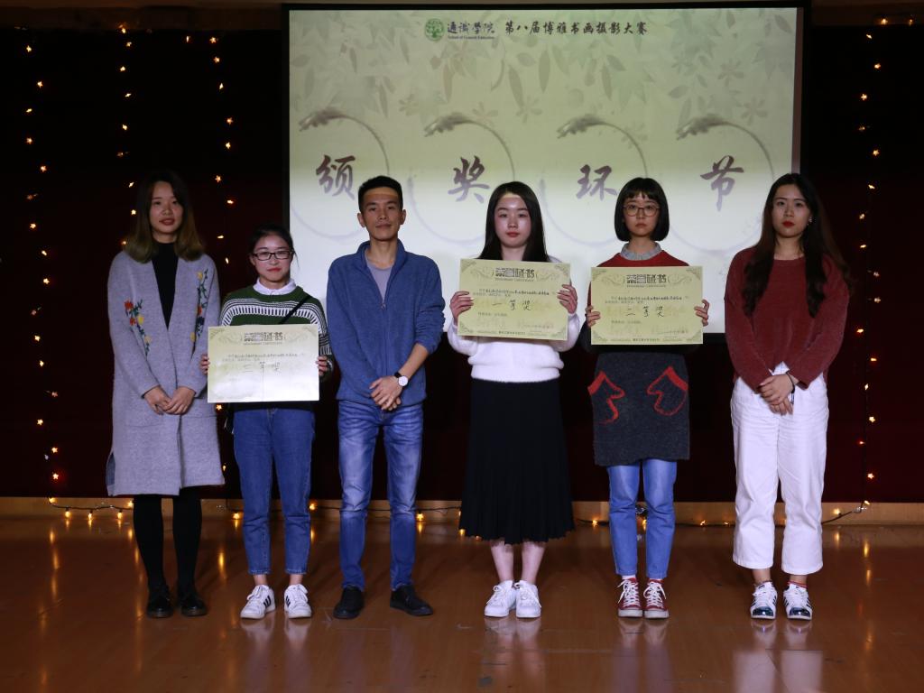 为弘扬中华传统美德,发掘同学们的潜能,展示同学们的个人艺术才华,重庆工商大学通识学院(江北)分团委、学生会宣传部及办公室共同举办了第八届“丹青飞扬,光影流年”博雅书画摄影大赛,并于11月4日14:00开展本次活动的决赛。通识学院分团委书记杨阳老师、第七届博雅书画摄影大赛书法组一等奖获得者盛婕、第七届博雅书画摄影大赛绘画组一等奖获得者唐静、第四届办公室分管副书记兼重庆市璧山区书协专业委员会委员赵晨颖以及影视动画学院动画专业木更新担任此次决赛评委。