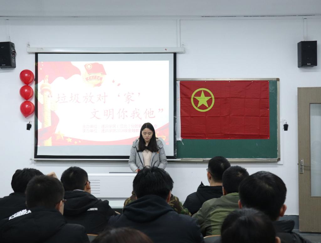 11月21日,由通识学院(江北)分团委、学生会主办、2018级金融数学支部承办的以“垃圾放对‘家’,文明你我他”为主题的生活垃圾强制分类主题活动在江北校区逸智楼A112教室开展。通识学院分团委书记杨阳老师、通识学院(江北)分团委、学生会组织部分管副书记徐雅灵和2018级经济统计学二班团支书瞿志鹏参加了本次活动。本次活动的目的是响应十九大绿色生活相关精神,让同学们学会生活垃圾分类,从而打造一个良好的学习生活环境。