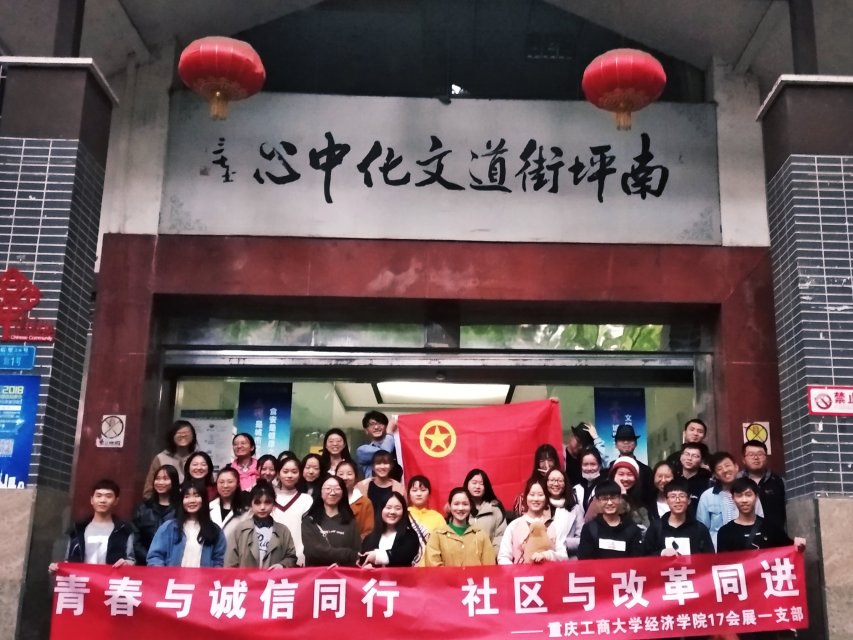 为回顾和总结改革开放四十年的历程与成就,学习与宣传社会主义诚信价值观, 11月16日,经济学院17会展一支部在南坪街道后堡社区开展了以“青春与诚信同行,社区与改革同进”为主题的团日活动。