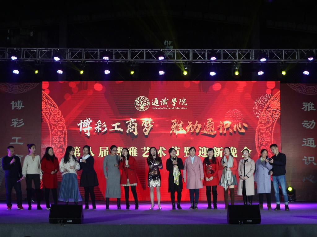 为丰富学生校园文化生活,提高学生综合素质,培养广大学生的艺术情操, 12月22日18时30分,由通识学院(江北)分团委、学生会举办的以“博彩工商梦,雅动通识心”为主题的第八届博雅艺术节暨迎新晚会在江北校区室内篮球场精彩上演。江北校区管委会主任何军,管委会副主任刘鹏,通识学院院长兼党总支书记包晓玲教授,通识学院党总支副书记况源,全体辅导员老师以及通识学子们共同欣赏本次演出。