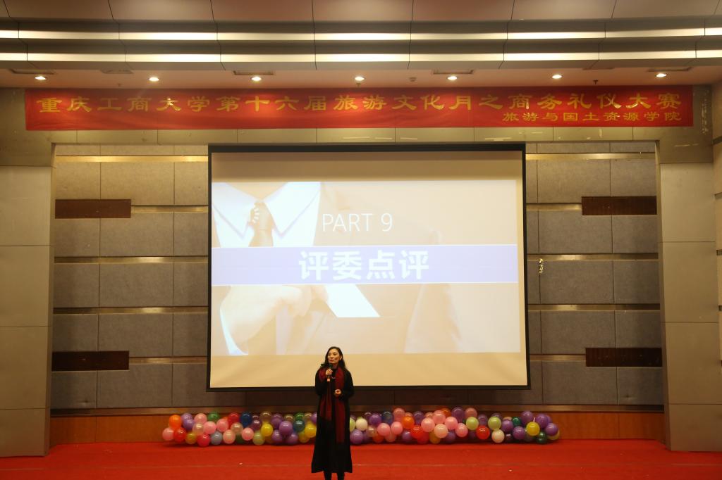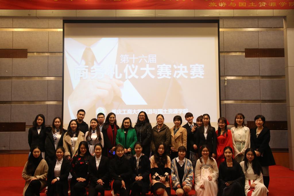 2019年11月22日,由重庆工商大学旅游与国土资源学院举办的第十六届商务礼仪决赛于下午14点15分在博智楼7100顺利举行。旅游与国土资源学院院长王宁教授,旅游与国土资源学院副院长代富强教授,旅游与国土资源学院党总支副书记余新书记,重庆市礼仪文化研究会会长、集雅书苑创始人杨炎女士,旅游与国土资源学院酒店管理系王飞飞老师,旅游与国土资源学院酒店管理系李爽老师,旅游与国土资源学院酒店管理系郭文正老师莅临此次比赛。