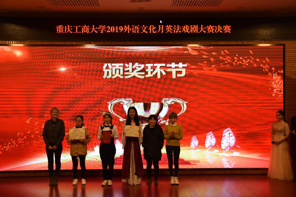为弘扬优秀戏剧艺术、展现语言魅力、丰富学生校园生活、塑造重庆工商大学优秀青年形象,2019年11月22日14:30,重庆工商大学2019外语文化月英法戏剧决赛在南岸校区博智楼07200学术报告厅成功举办。此次大赛由外语学院分团委学生会学习部主办,出席决赛的嘉宾有外语学院党总支副书记程亚、法语教师黄志婕、法语外教Miah。担任决赛的评委有法语系主任曹鹏老师、法语教师夏霁、法语外教Lucie、英语教师刘晓远、季峥、史凤晓。