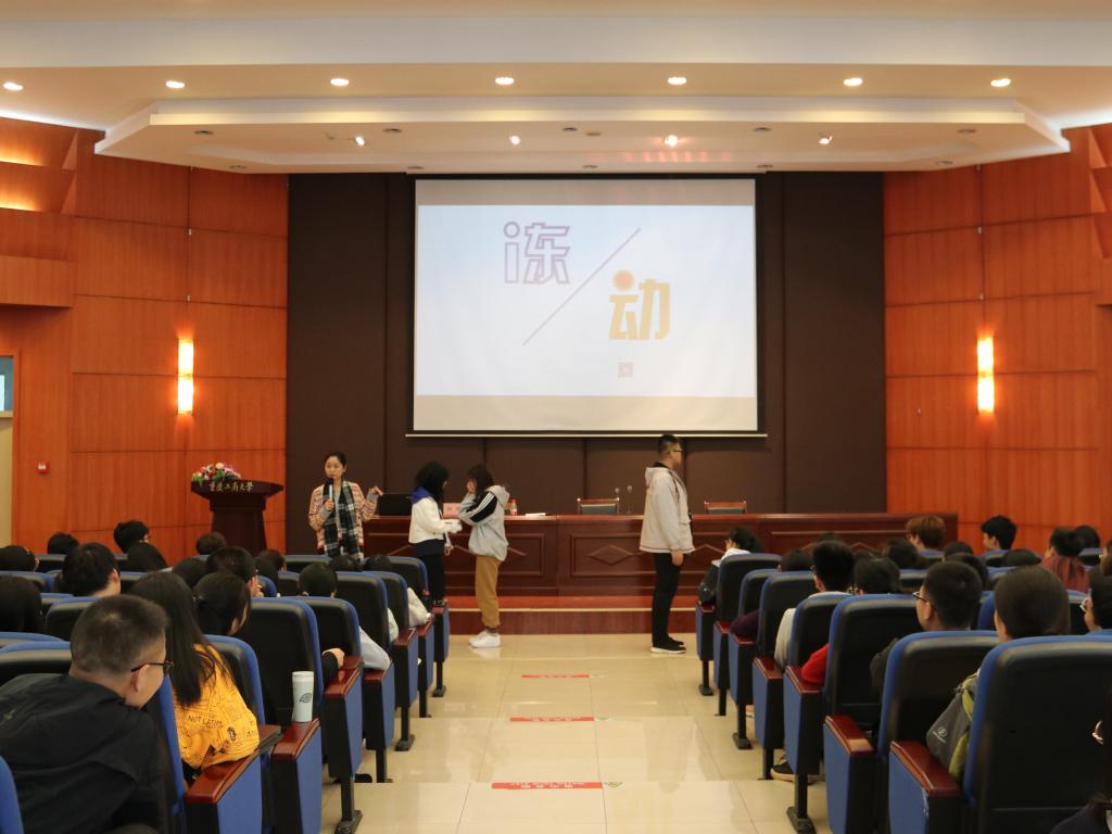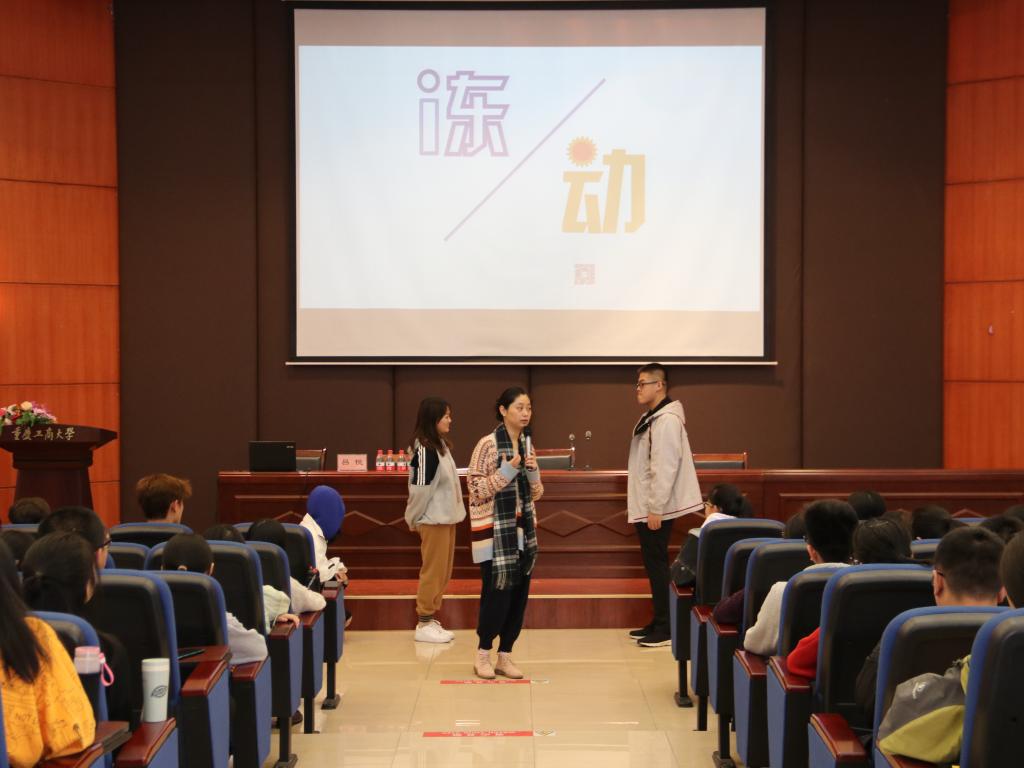 首先,吕悦老师通过提问初步了解了同学们在适应、恋爱与人际交往方面的需求。接着,她询问同学们喜欢自己的原因,有同学提出了“没人喜欢我,只有我喜欢我自己”的观点,吕悦老师趁势展开了对四种交往障碍的讲解。通过四位同学的模拟演示,吕悦老师提出上面“没人喜欢我”的想法便是一种“缺乏自信”的交往障碍。随后,在吕悦老师细致的讲解中,同学们也加深了对“用讨好维持关系”、“以外在力量掩饰内心脆弱”、“找借口逃避交往困难”等其他三种交往障碍的了解。吕悦老师提出:我们不应将内心的自我关进黑屋,过分的贬低自己、掩饰自己、逃避真正的自己;而要关心内心的自我,进而冲破交往的藩篱,更好地适应大学生活。