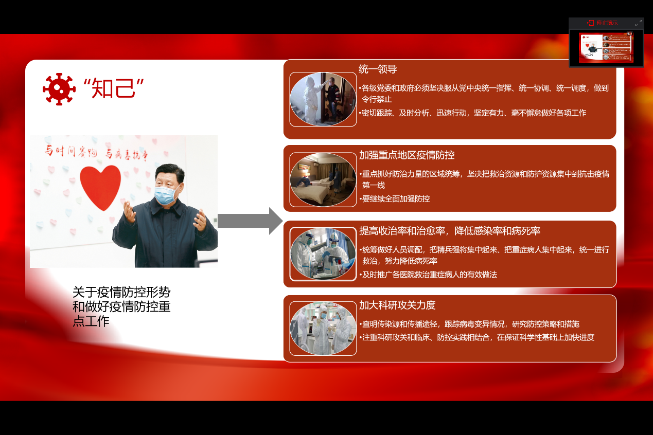 2018级金工二班团支部通过两名志愿者分享了自己在乡镇内担任志愿者服务期间的所见所想还原了抗疫工作时的“守护者”精神,尽管工作不算繁杂但是也是在为这场人类与病毒的战役,用不断增长且触目惊心的数字激励着自己坚守岗位,勉励了同学们星星之火可以燎原,人类团结起来一定能打败作为唯一对手的病毒!