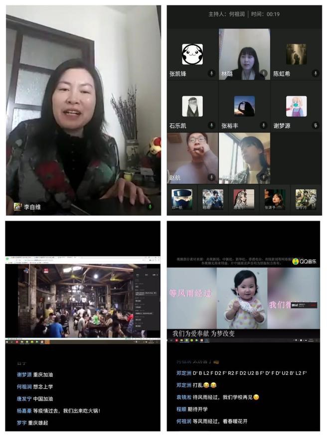 活动以全体团员起立齐唱团歌拉开序幕,李自维书记通过视频为大家加油鼓劲,鼓励同学们肩负起青年团员的使命与责任,不忘初心、牢记使命,服从安排,积极应对,主动发挥共青团员的先锋模范作用,协助学校、学院做好疫情防控工作。一段重庆防疫宣传片为大家带来了别样的感动,团员们纷纷在评论区留言,为重庆加油,为武汉加油,为中国加油。