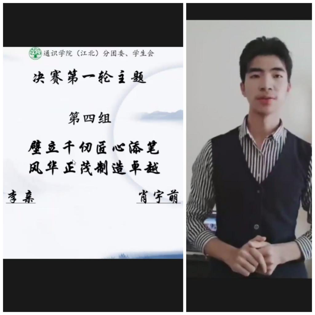 此次线上教学期间,通识学院(江北)全体同学在“停课不停学,宅家不宅心”这一思想的引导之下,积极参与本次活动,不仅淋漓尽致地展现出参赛者良好的学识修养与卓越的专业演讲技巧,还展现出同学们强烈的求知精神、“宅家”期间的乐观精神和社会责任感。