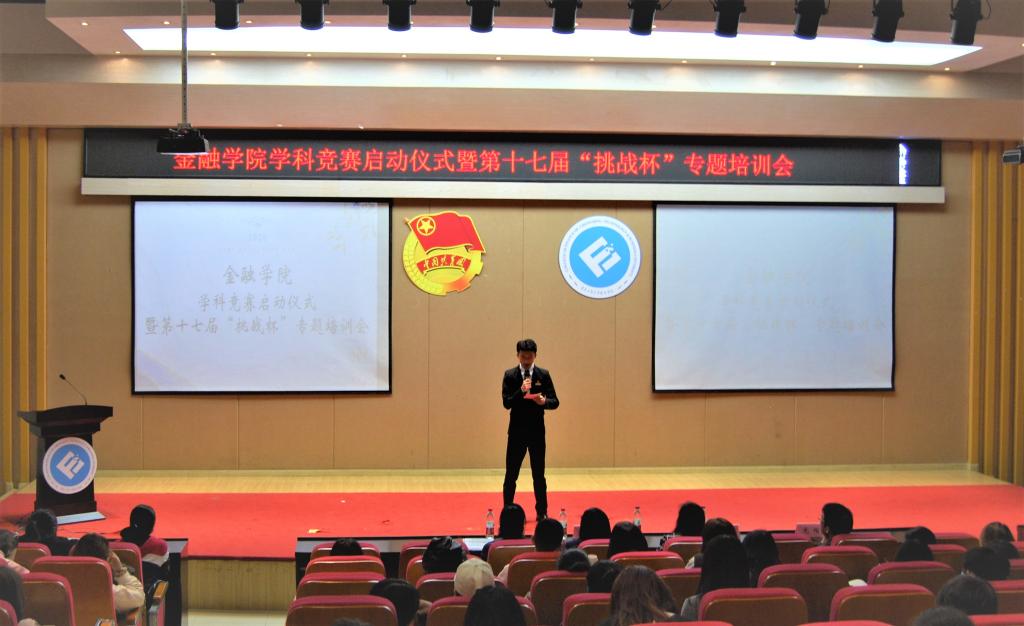 为引导广大学生积极参与学科竞赛,培养和提高大学生创新能力和学术水平,备战第十七届“挑战杯”全国大学生课外学术科技作品竞赛,2020年11月4日,金融学院学科竞赛启动仪式暨第十七届“挑战杯”专题培训会在田家炳209顺利举行。学院余新副书记、庞楷副院长、学工办兰丽娟副主任、蒋伟燕老师以及各年级拟参赛同学参加了大会。