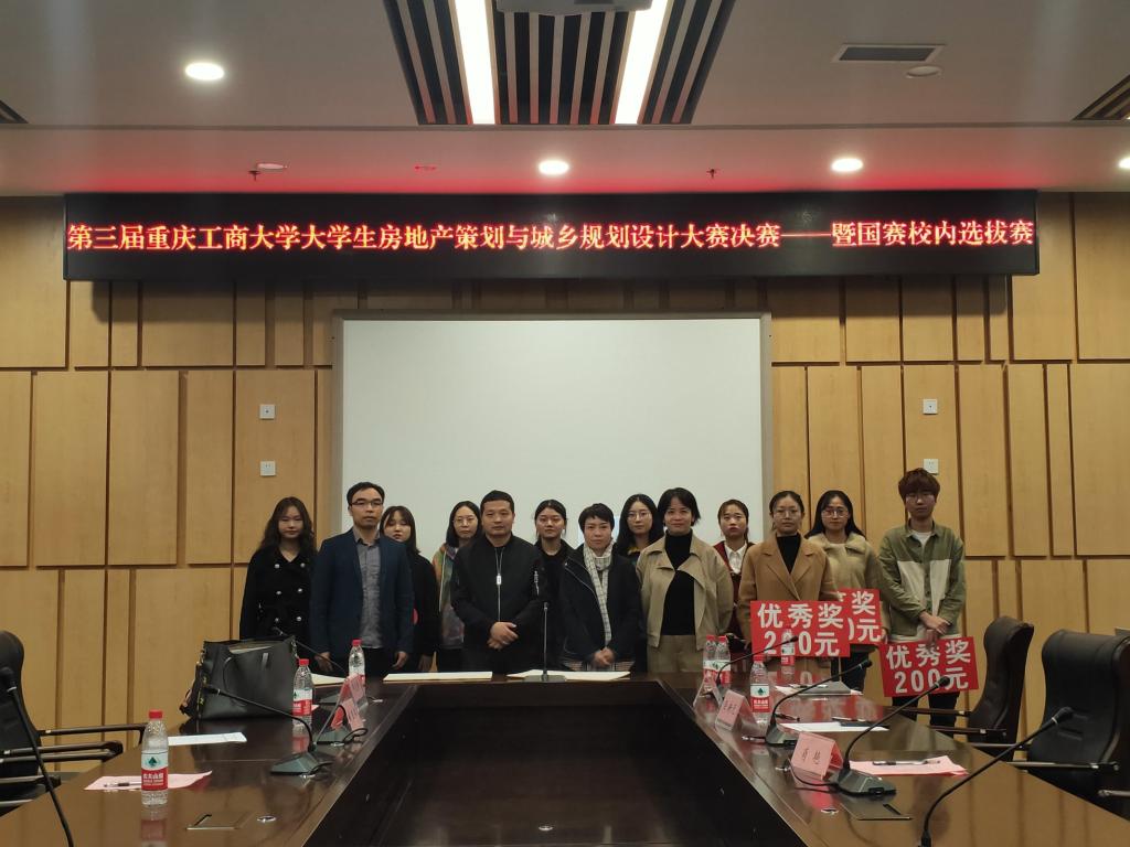 2020年11月6日,由重庆工商大学共青团2003网站太阳集团分团委、城乡规划系和土地资源管理系共同承办的第三届重庆工商大学大学生房地产策划与城乡规划设计大赛决赛—暨国赛校内选拔赛在南岸校区图书馆会议室(一)圆满落幕。大赛以“绿色生态;低碳生活;美丽中国”为主题,旨在提高参赛学生的创新创业实践能力,帮助房地产行业品牌企业发现人才、为规划设计单位输送高质量的规划师。