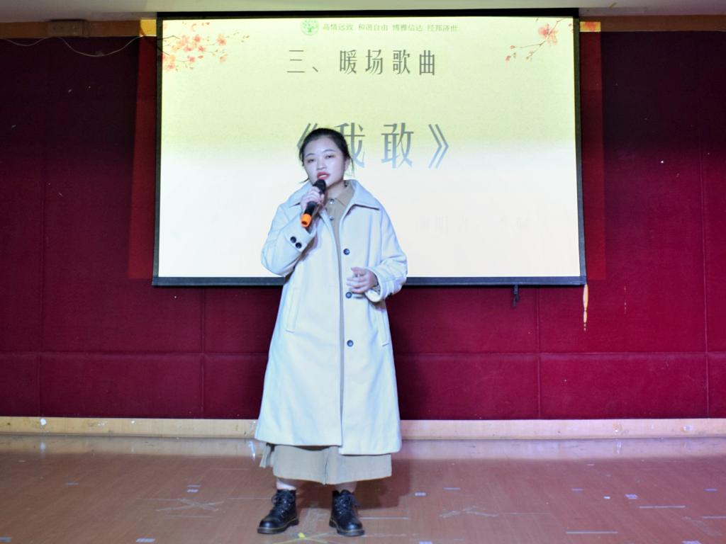 2020年11月28日18时30分,通识学院博雅艺术团综合部在江北校区学生活动中心开展了以“金筒传声润雅言,‘持’骋通识语韶华”为主题的主持人大赛。出席评委为通识学院博雅艺术团代表任瑶以及第六届“校园之声”主持人大赛优秀选手代表沈思宇、曾湘、邓子俊。