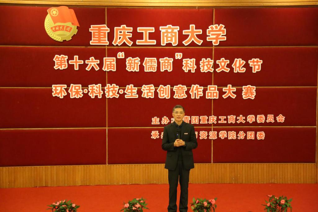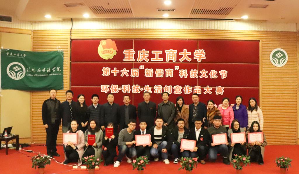 为贯彻落实习总书记在十九大报告中提出推进资源全面节约和循环利用的节能战略,响应倡导简约适度、绿色低碳的生活方式,反对奢侈浪费,创建“绿色学校”的号召,2017年11月24日下午14:00由共青团重庆工商大学委员会主办,环境与资源学院承办的重庆工商大学第十六届“新儒商”科技文化节之“环保·科技·生活”创意作品决赛于南岸校区博智楼7200报告厅隆重举行。重庆工商大学副校长陈运超教授、校团委杨娟副书记,环境与资源学院分党委王竹青书记、院长傅敏教授、分党委吴佑波副书记、副院长王星敏教授莅临此次大赛,环境与资源学院王小平、杨海林、唐晓旻、吴虹、谭彩荷老师担任此次大赛评委。