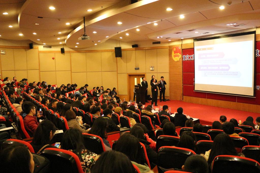为进一步营造良好的学习风气和学术科技文化氛围,落实立德树人根本任务,激发全校学生创新、创优、创业,弘扬“新儒商”文化,由重庆工商大学校团委主办,会计学院分团委学生会、财会研究会承办的重庆工商大学第十六届“新儒商”大学生科技文化节财务案例分析大赛决赛于2017年12月3日在博智楼7200报告厅顺利举办。莅临决赛现场的领导及来宾有:会计学院分党委书记罗惠玉,重庆工商大学校团委副书记陆嘉,会计学院分党委副书记尹建平,重庆巨能建设集团总承包公司集团项目管理公司总会计师、副总经理、重庆会计领军人才王春波,会计学院财务管理系主任黄辉,审计系主任蒋弘,学团办主任刘斌,审计系老师蒋水全博士,以及全体辅导员老师。