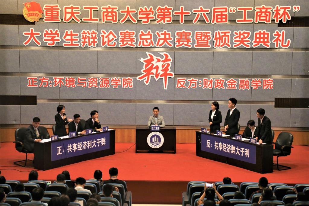 5月24日19:00,第十六届“工商杯”大学生辩论赛总决赛暨颁奖典礼在南岸校区博智楼7100报告厅举行。西南政法大学辩论队总教练、中国演讲与口才协会联盟常务理事会王安白教授,西南政法大学新闻与传播学院党委书记辛杰,第八届全国名校大学生辩论邀请赛冠军、西南政法大学辩论队教练景轶老师,我校艺术学院院长、博士生导师殷俊教授,校辩论队原指导教师李长坤担任总决赛评委,校团委副书记杨娟、陆嘉与全校500余名师生一起观看了比赛。