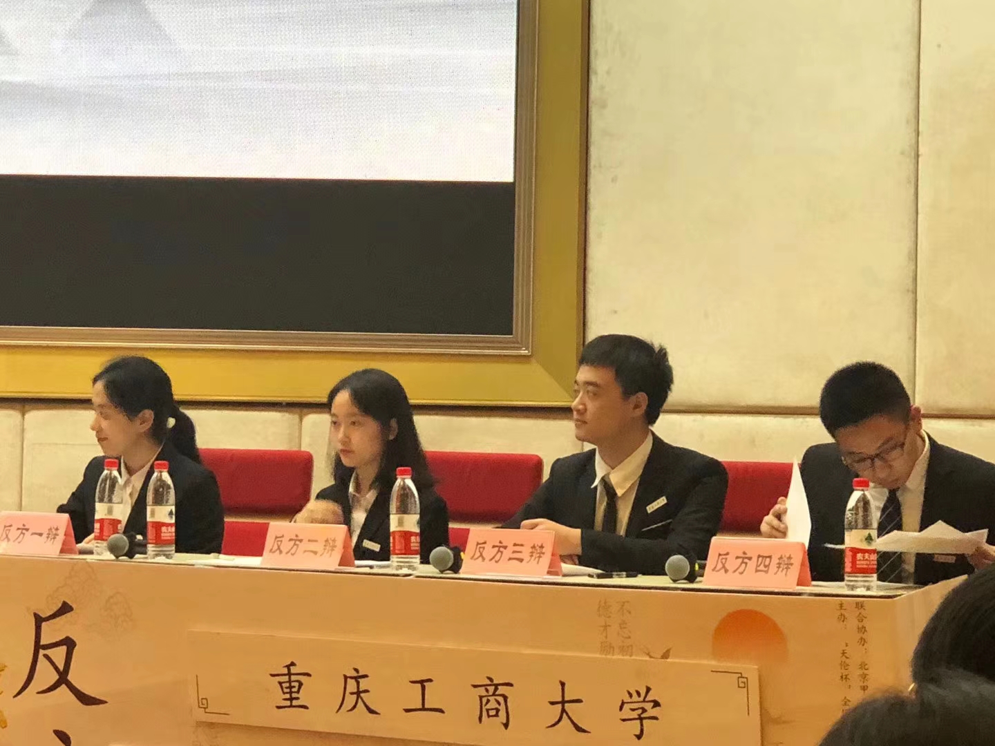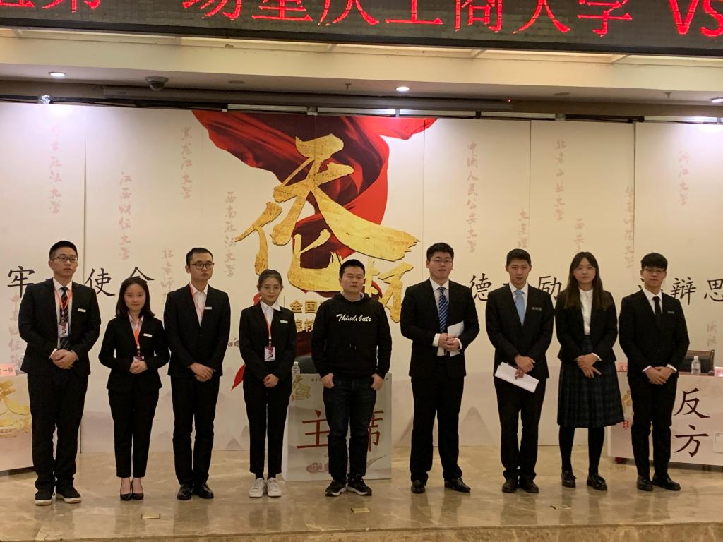 经过三天更加激烈的复赛,我校辩论队先后战胜中国人民公安大学,复旦大学,晋级四强,在半决赛6:8惜败于华东政法大学,重庆工商大学辩论队获得季军。其中,经济学院张煜同学两次获得了“优秀辩手”称号。