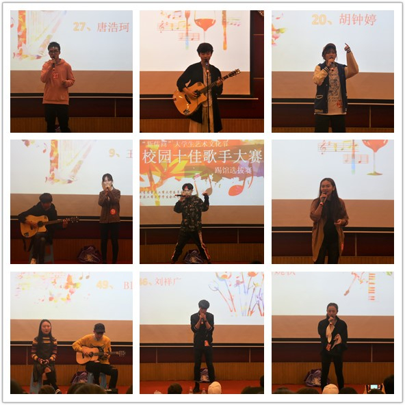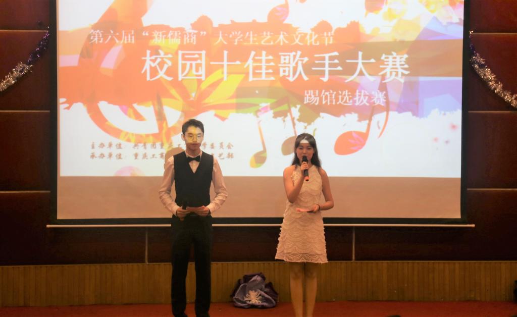 3月31日18:30,由校团委主办,校学生会承办的第六届“新儒商”大学生艺术文化节之校园十佳歌手大赛(踢馆选拔赛)在南岸校区博智楼7200报告厅正式开赛。第五届校园十佳歌手大赛冠军鞠丛阳,十佳歌手王苛宇、欧盛萍、孙泓、张祎鑫担任本场比赛的评委。