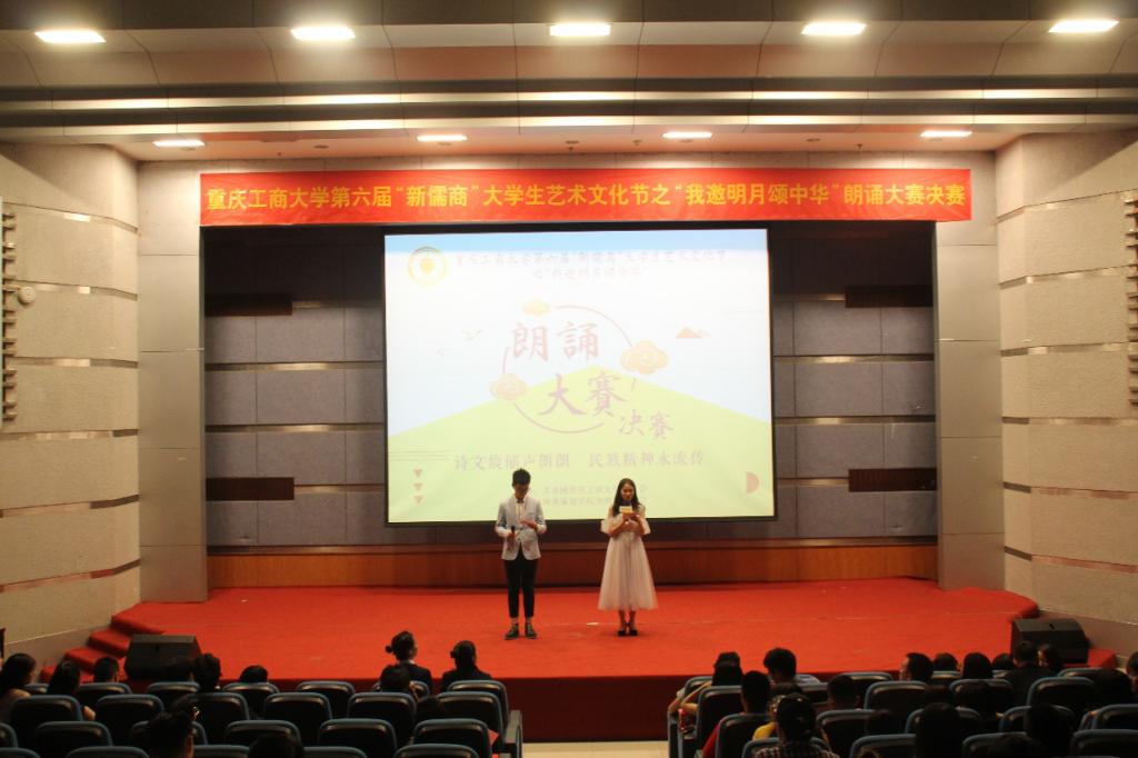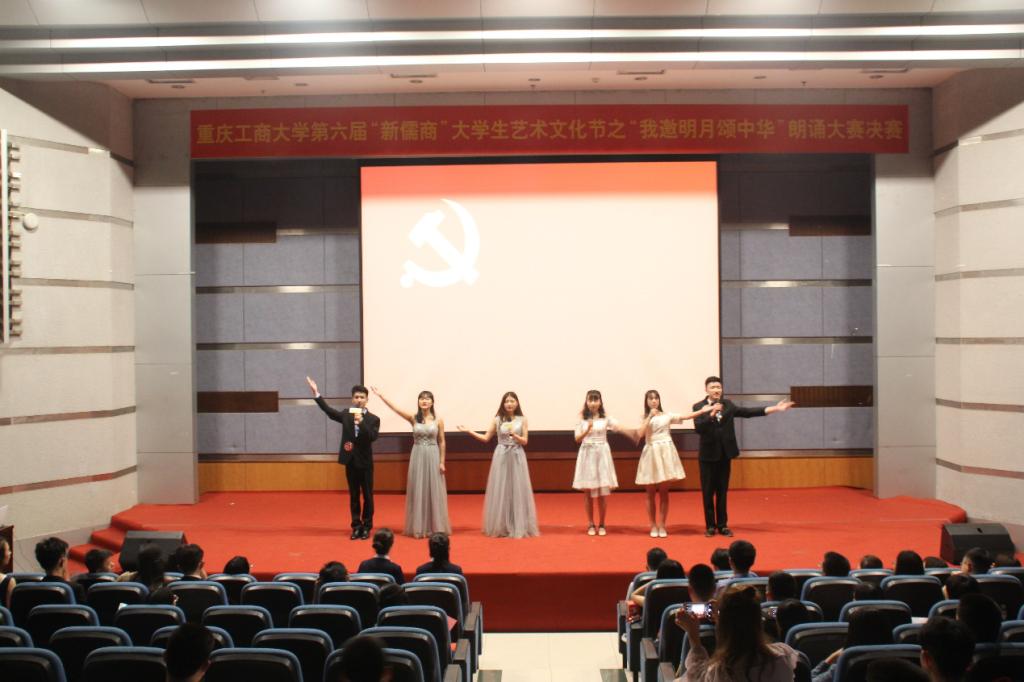 2018年4月20日下午七点,重庆工商大学第六届“新儒商”大学生艺术文化节之“我邀明月颂中华”朗诵大赛决赛在博智楼7100成功举办。学院邀请到文新学院教师韩放博士、机械工程学院老师秦杉博士、重庆话剧团青年演员周诗蕾,重庆市普通话水平测试员张彦,校艺术团播音主持艺术分团指导老师封海粟担任评委。