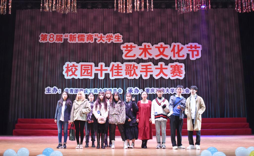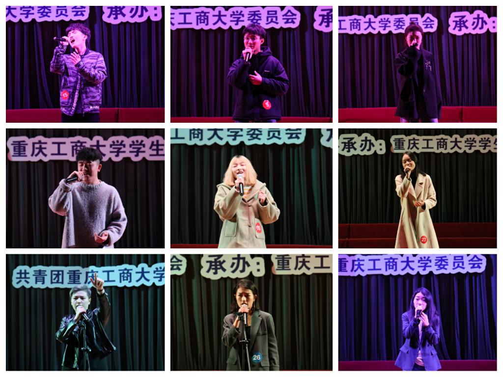 11月10日和22日,第八届“新儒商”大学生艺术文化节之校园十佳歌手大赛复赛(60进30)、晋级赛(30进16)分别在南岸校区博智楼7100报告厅和体艺馆举行。校团委陈琛老师、王灿老师、第一届校园十佳歌手大赛亚军徐菁,重庆理工大学艺术指导老师张晶老师、重庆工商大学校团委王灿老师、徐阔老师、以及第七届“新儒商”大学生艺术文化节校园十佳歌手兰松、郑鑫、翁永振分别担任两场比赛的评委。比赛现场人头攒动,座无虚席。