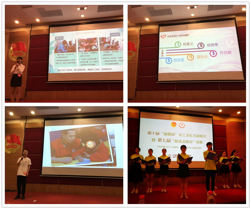 6月6日19:00,由校团委主办,校义协承办的我校第十届“新儒商”义工文化节闭幕式暨第七届寻找“最美志愿者”决赛在南岸校区博智楼7200举行。校团委陆嘉副书记、王微老师,第十五届校义协副主席马金竹,校学生会主席高琳菲,第六届最美志愿者林煌罡担任比赛评委;各学院义工志愿者分会指导老师、志愿者代表等共计300余人参加活动。