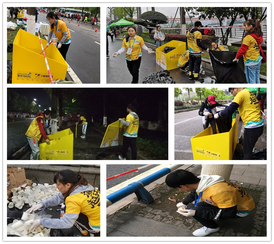 本次马拉松志愿者招募是授重马组委会委托,由校团委、体育学院联合开展,至3月起面向全校学生进行了招募和选拔。3月24日,在南岸校区图书馆剧场举行了志愿者专题培训。3月31日凌晨4:00,所有志愿者整装待发,陆续前往南滨路42公里全程各个站点开始准备工作。本次服务的内容是全程赛道的垃圾清理,从凌晨4点到下午2点,志愿者正在工作人员的安排下,有序的开展。时间长,任务重,工商学子发扬不怕苦,不怕累的精神,坚持完成全部工作,充分发挥了工商学子的优秀品格。