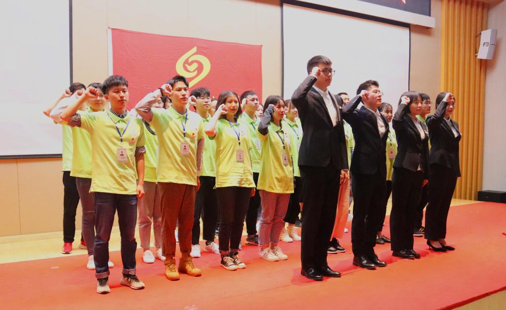 活动伊始,观看了视频《义路同行——第十一届义工文化节精彩集锦》,志愿者们在社区服务、助残、关爱行动中所展现的热情,留下的汗水和笑脸,感动着在场的每一个人。随后,校团委王微老师介绍了第十二届“新儒商”义工文化节的活动安排和总体要求:本届文化节以“七十载祖国风雨征程,十二年义工砥砺前行”为主题,包括阳光助残、关爱行动、学风建设、文化宣传、绿色环保、社区服务、大型赛会服务等7大类共计40个项目特色活动,开展时间贯穿2019-2020整个学年。校义工志愿者协会梁广南同学对本届文化节即将开展的“益行青春”志愿服务技能大赛进行了详细的介绍。开幕式上,校义协“以手绘爱”公益手语团队的志愿者们和校园十佳歌手还一起带来了手语表演《梦开始的地方》,预意着新一届文化节的开启。来自优秀义协分会代表财政金融学院“星火”义工志愿者协会唐月同学上台进行了交流发言,分享了他们的志愿服务和收获。随后,全场志愿者一起宣誓,承诺尽己所能,不计报酬,帮助他人,服务社会,践行志愿精神,传播先进文化!铮铮誓言,铿锵有力!最后,校团委陆嘉副书记作了总结发言。她对全场的志愿者提出了几点希望,希望大家要立德、要有宽容之心,要会学习,要从小事做起,坚守初心,守住平凡,在志愿服务的过程中找到自我价值,实现自我成长;在服务社会,帮助他人的过程中,绽放最美丽的青春。