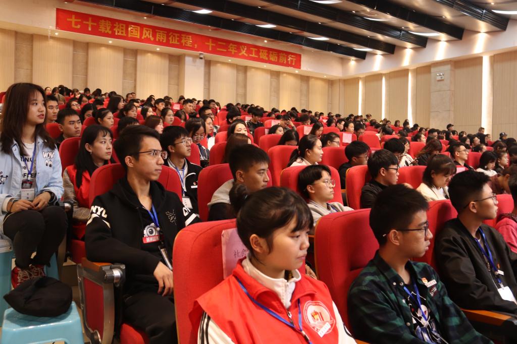 11月10日14:30,由校团委主办,校义工志愿者协会承办的重庆工商大学第十二届“新儒商”义工文化节开幕式在南岸校区田家炳209报告厅如期举行。校团委副书记陆嘉、校义协指导老师王微、校级相关学生组织、各学院义协学生干部代表、校义协全体成员参加了活动。