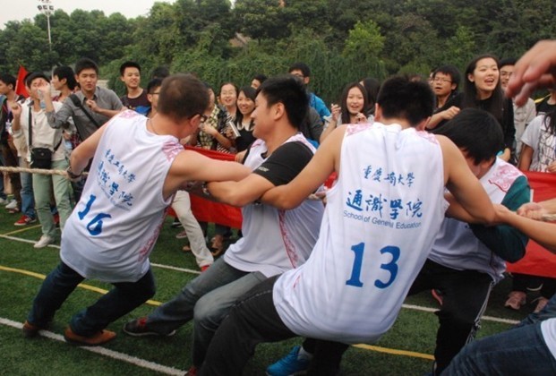 10月26日下午,重庆工商大学第一届大学生体育文化节在学校主校区北区篮球场拉开帷幕,通识学院代表队参加了活动开幕式,并在随后的“健康校园杯”趣味运动会中取得第二名的好成绩。