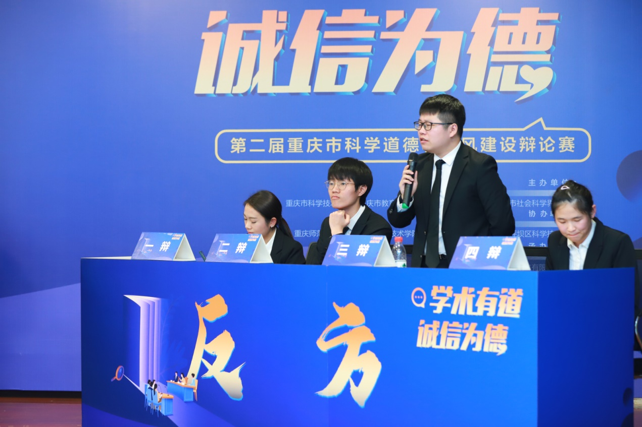 12月8日,由市科协、市教委、市科技局、市社科联联合举办的以“学术有道,诚信为德”为主题的2021年重庆市科学和学风建设辩论赛半决赛在重庆师范大学大学城校区举行。经过12月7日分赛区激烈的角逐,重庆工商大学、重庆大学、重庆三峡学院和重庆文理学院辩论队从23支高校辩论队中脱颖而出,入围四强。