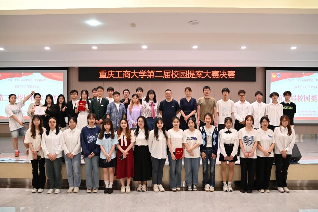 决赛中,每支队伍详细阐述提案内容、提案意义、调研内容与解决方案,为建设重工商大校园积极建言建策。经过激烈的角逐,提案《关于如何消减大学生在校活动或比赛消息差的建议》、提案《关于在全校长期设立节能志愿者岗位的建议》获得一等奖;提案《关于提升大学生自习室环境的建议——以设立宿舍自习室与改善图书馆自习室环境为例》、提案《关于在校内女厕设置爱心接力卫生巾互助盒的建议》、提案《关于重庆工商大学校园内学生代步工具规范问题的建议》获得二等奖;提案《关于“让书走出图书馆”的建议》、提案《关于个性化摆摊进入大学校园的建议》、提案《关于如何提高在校学生对水果摄取量的建议》、提案《关于解决校门处外卖乱象解决的建议》、提案《关于设立校园文创产品店的建议》获得本次大赛三等奖。