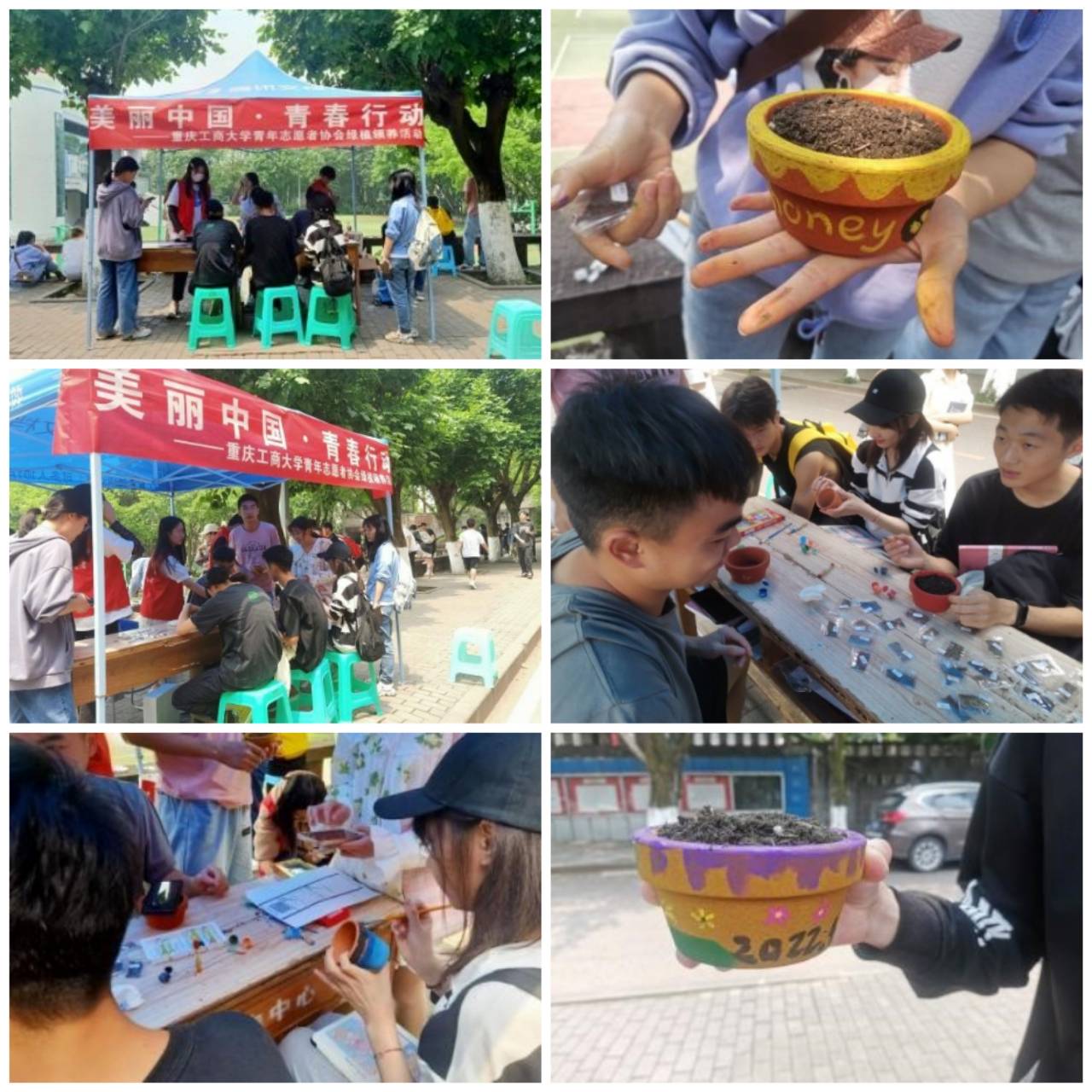 为践行生态文明理念,积极响应团中央号召,4月以来,我校青年志愿者协会结合线上线下等形式开展了“美丽中国,青春行动——绿植领养”活动。4月5日-5月23日线上宣传活动,约有500人参与微博话题、“我与绿植”的留言讨论等。4月22日在南岸校区开展线下领养活动,300余人积极参与。5月27日,在江北校区开展线下领养活动,200余人参与绿植领养。期间,还在微博上开展了“记录春色,感知生态之美——镜头中的春天”,校园春景直播等活动。