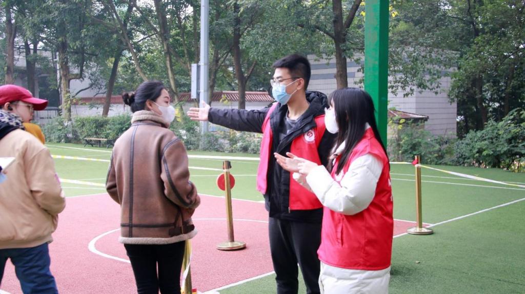 本次新冠疫苗加强针接种点设于南岸校区体艺馆,等待接种的同学在志愿者们的协助下有序排起了长队,戴上口罩,保持距离,进入体艺馆内登记、接种、留观。在进口、出口、接种区、留观区,均活跃着青年志愿者的身影,协助医护人员对前来接种的学生进行引导分流、解答疑问,有序维护现场秩序。接种现场的一名青年志愿者说“我们做的是作一名青年志愿者应该做的事情,及时引导接种疫苗的师生,维持现场秩序,提高医护人员的工作效率,尽力减少我校师生接种疫苗的排队时间。”