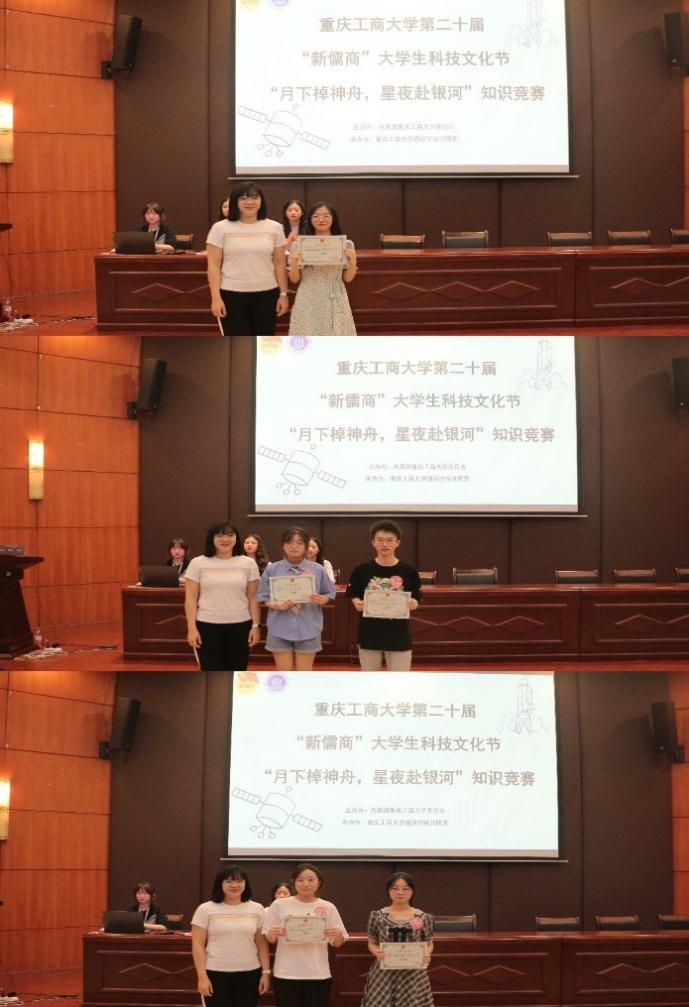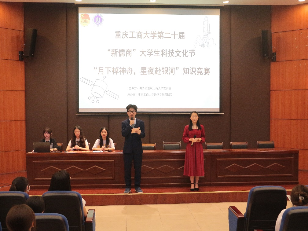 为了拓展工商学子视野,提升当代大学生科学素养,4月23日,由校团委主办、通识学院分团委承办的第二十届“新儒商”科技文化节“月下棹神舟,星夜赴银河”知识竞赛在江北校区宏智楼学术报告厅举行。本次比赛采用线下选手参加和线上观众观看相结合的形式,通识学院学工办副主任、分团委副书记栾薇薇,分团委学生会成员代表参与本次比赛。